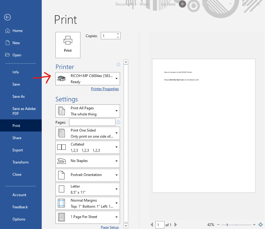 7. Select Printer (RICOH MP – Printer, Scanner)